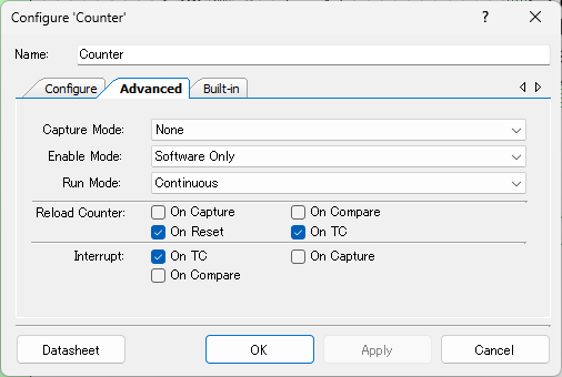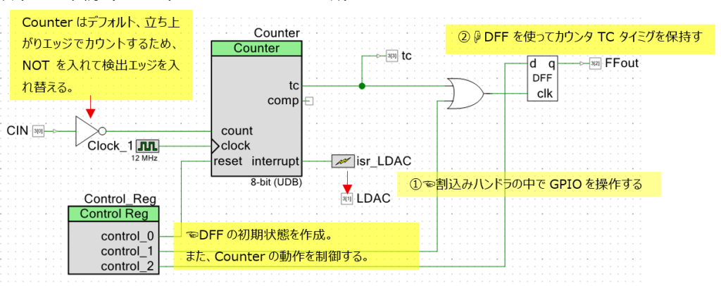 ① Counterを用いてI2CのCLKの立下りエッジを18個カウントして、割り込みを発生させる