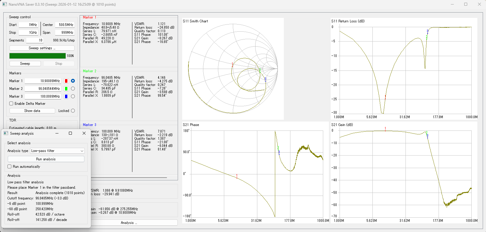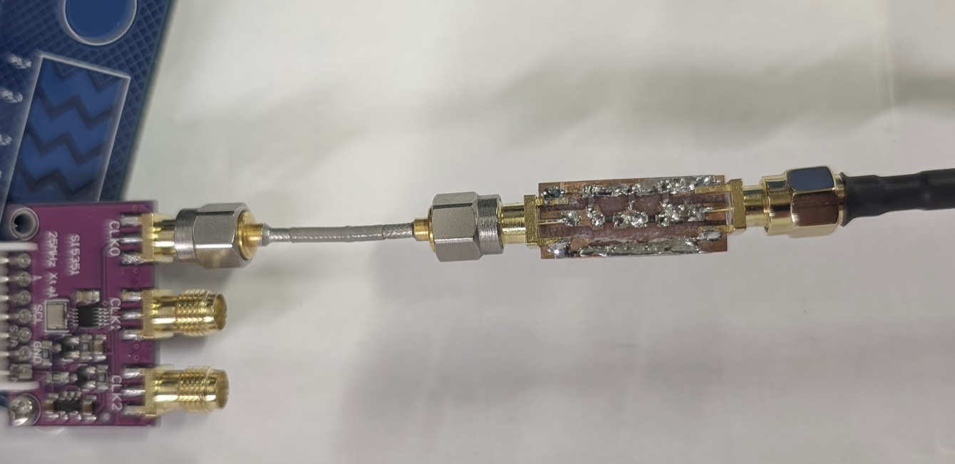 si5351aは方形波出力のクロック発振源なのでSIN波が欲しいときは、si5351aで生成された方形波出力を100MHzのLOW PASS Filterで正弦波にすることになる。